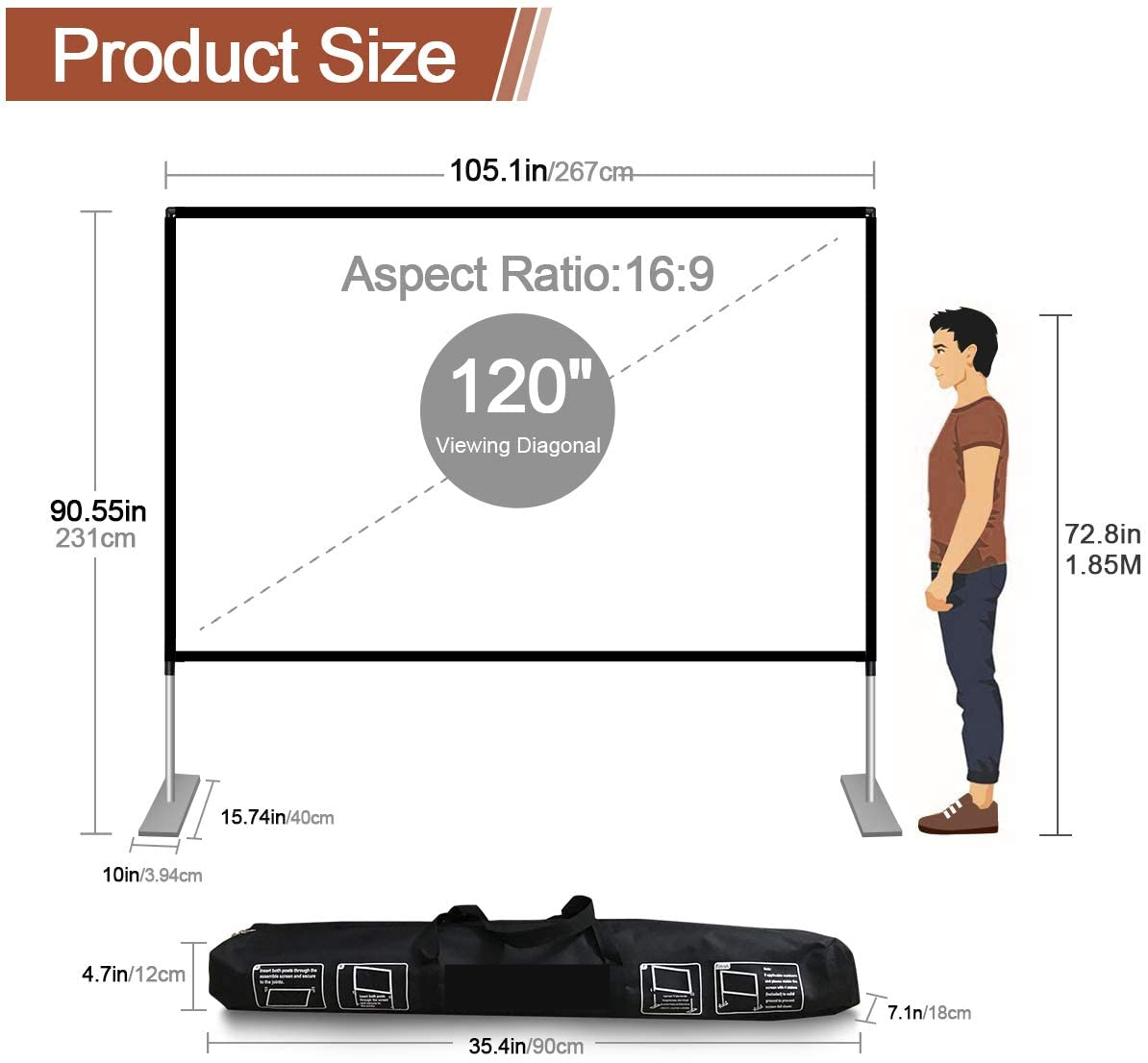 Schermo di Proiezione per Video Proiettore – Supporto Pieghevole 120″ 16:9